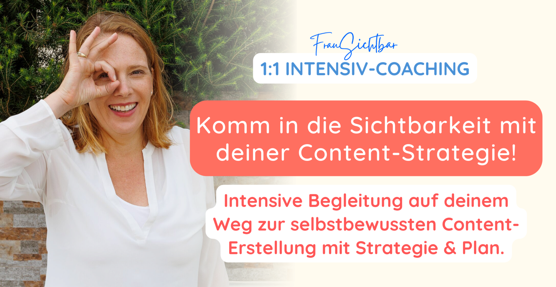 In diesem 1:1 Intensiv-Coaching begleite ich ca. 3 Monate lang auf deinem Weg zur selbstbewussten Content-Erstellung mit Plan und Strategie.